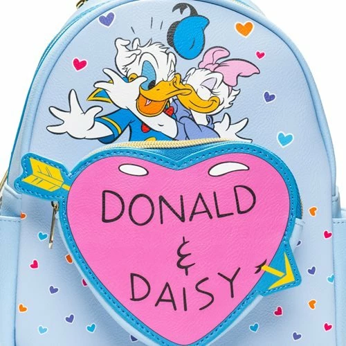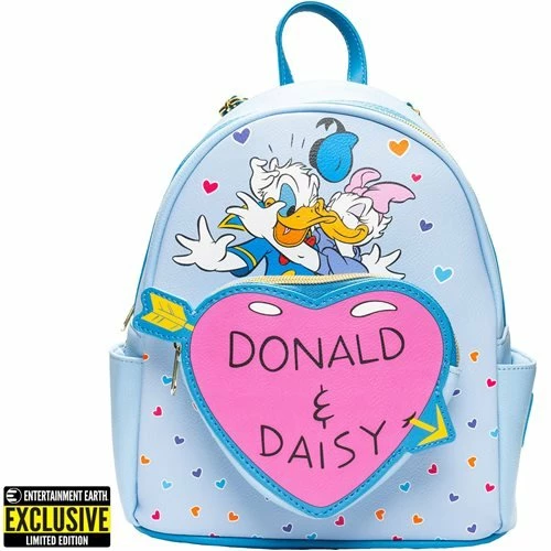 Is your love meant to be as true as Donald and Daisy’s? It just might be with this delightful Disney Donald and Daisy Duck Hearts Mini-Backpack – Entertainment Earth Exclusive! Spotlighting Donald Duck and his love interest Daisy Duck displaying their affection for each other, it’s made of faux leather and features top zipper closure, a front zippered pocket, adjustable straps, matching themed lining, shiny gold hardware, and printed details.