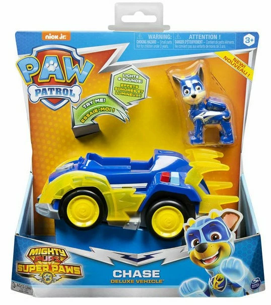 The PAW Patrol pups are ready for mighty action in their Super PAWs Deluxe Vehicles! With your pup (figure included) behind the wheel of their vehicle, it’s time to race to the rescue! Each pup’s Super PAWs Deluxe Vehicle is equipped for action-packed mighty rescue missions, with lights and sounds, and real working wheels! Push the button on the front of the vehicle to activate the lights and sounds translucent accents light up as it makes exciting sound effects! Collect the rest of the Super PAWs pups and Deluxe Vehicles (each sold separately) and team up to help save the day! Join the PAW Patrol pups on rescue missions with his Mighty Pups Super PAWs Deluxe Vehicle!